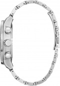 Часы-хронограф с секундомером и тахиметром. Секундомер с точностью показаний 1/5c и временем измерения 60мин. 12-ти и 24-х часовой формат времени. Окошко даты находится в положении 3 часа. Браслет с раскладывающейся застежкой.
