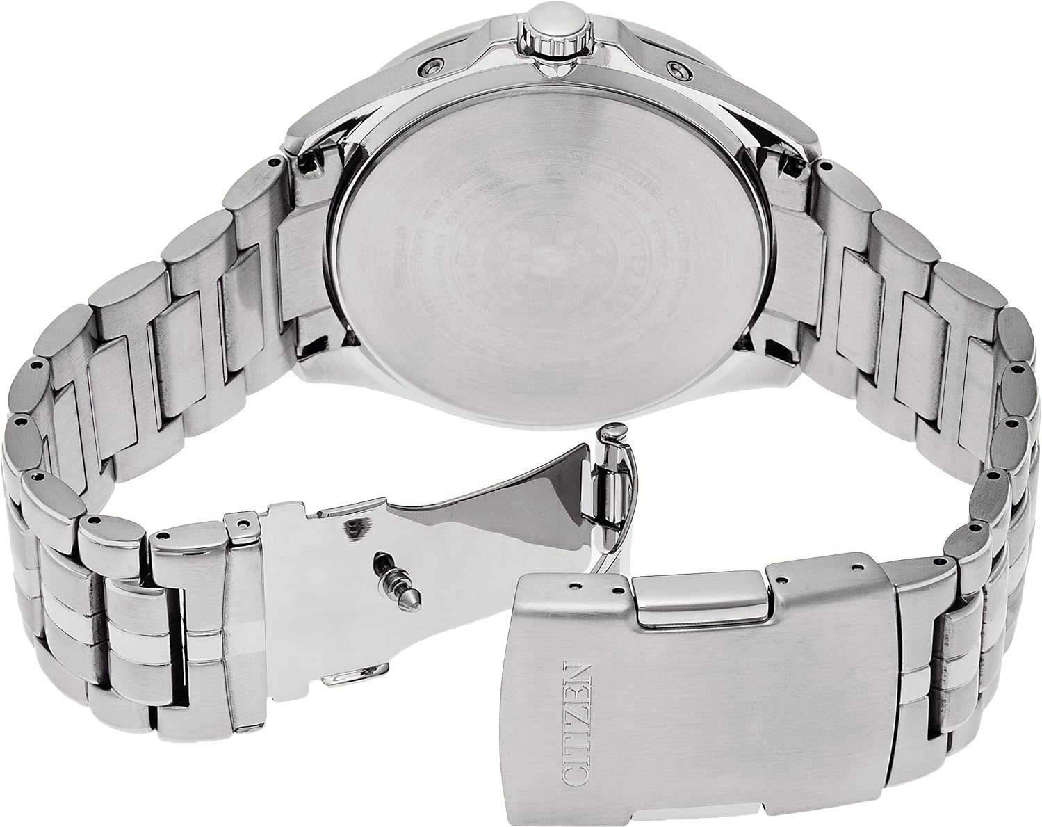 Циферблат выполнен по технологии Sunray (солнечные лучи) и защищен прочным сапфировым стеклом. Метки в виде штрихов. Окошко даты находится в положении 3 часа. Заводная головка с защитой. Браслет с раскладывающейся застежкой.