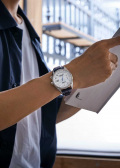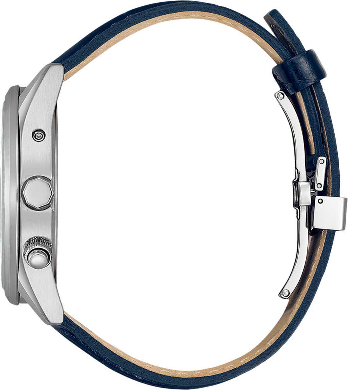 Мировое время - 26 городов, всемирное координированное время (UTC). Переход на зимнее и летнее время, возможность отключения данной функции. Циферблат с метками в виде штрихов защищен прочным сапфировым стеклом. Окошко даты находится в положении 3 часа. Ремешок с раскладывающейся застежкой.