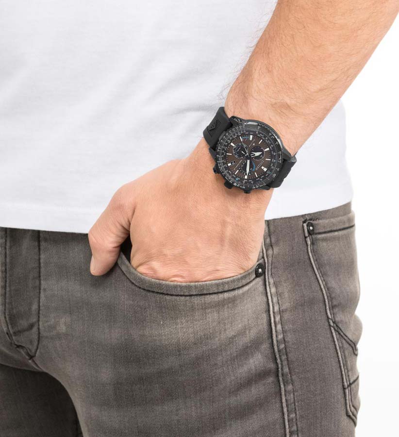 Высокотехнологичный хронограф с обширным функционалом для всех, кто не мыслит свою жизнь без приключений.Promaster Sky Radio-Controlled. Система Eco-Drive, не требующая замены батарейки. Питание от солнечной энергии, запас энергии на 300 дней. Функция индикации заряда (EOL)