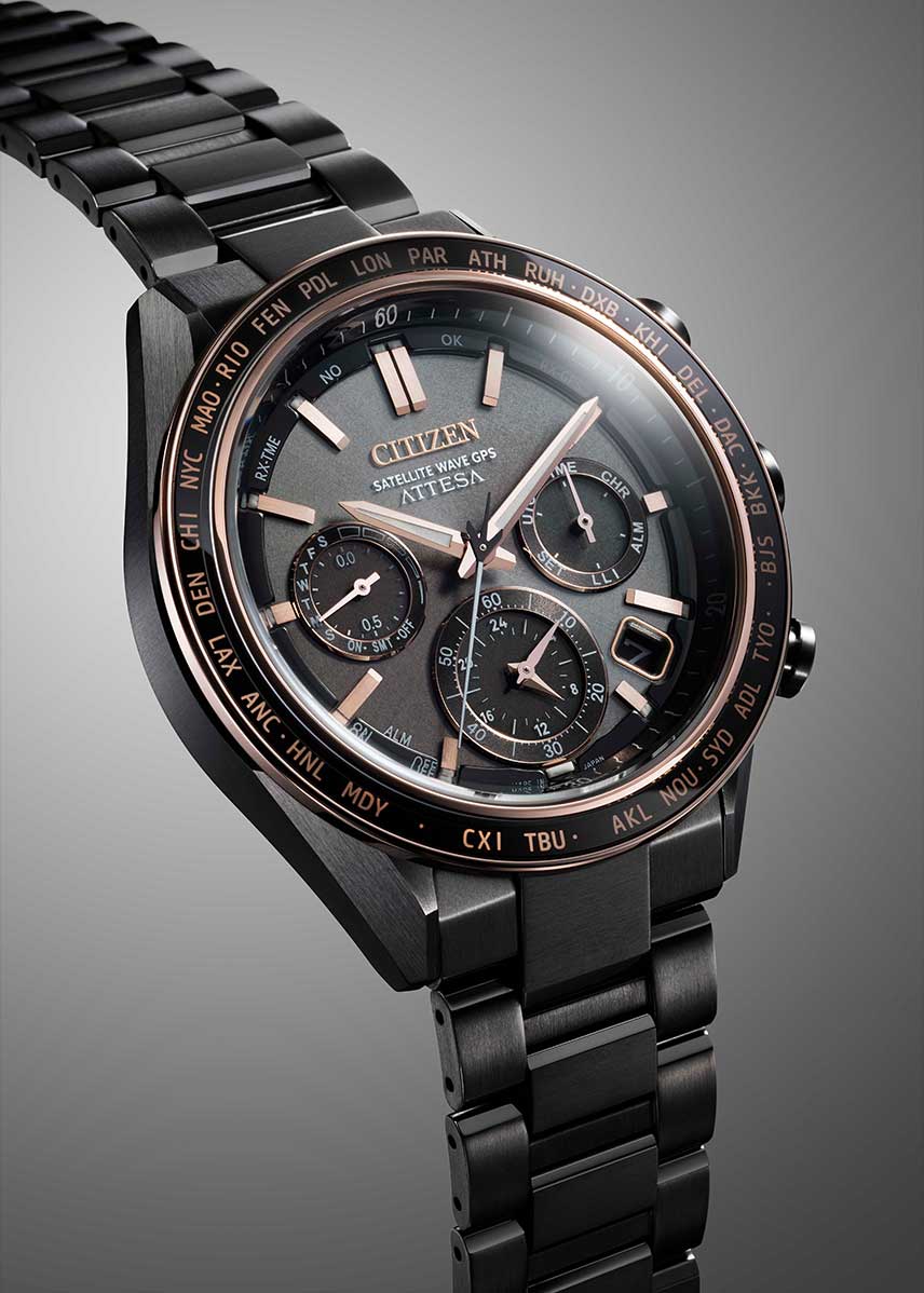 Спутниковая система синхронизации времени GPS Satellite Wave (зона приема: весь мир). Точность хода без приема сигнала: +/-5 сек в месяц. Мировое время