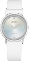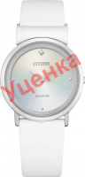 Citizen L. Ультратонкие. Система Eco-Drive, не требующая замены батарейки. Питание от солнечной энергии, запас энергии на 240 дней. Функция индикации заряда (EOL) и предотвращения перезарядки. Метки в виде точек. Прочное сапфировое стекло защищает циферблат. Титановая задняя крышка. Ремешок из синтетической кожи с классической застежкой.