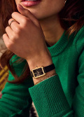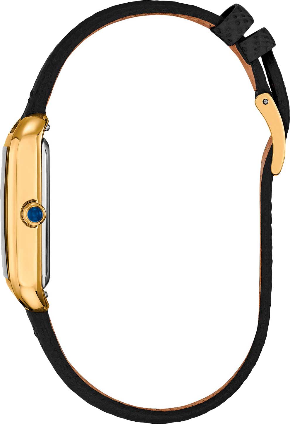 Циферблат с метками в виде штрихов выполнен по технологии Sunray (солнечные лучи). Заводная головка украшена камнем в форме кабошона. Ремешок с классической застежкой и системой быстрой замены.