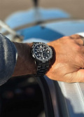 Мировое время - 43 города. Всемирное координированное время (UTC). Циферблат с метками в виде штрихов и арабских цифр. Вращающийся безель с логарифмической линейкой. Рифленая заводная головка с защитой. Браслет с раскладывающейся застежкой.