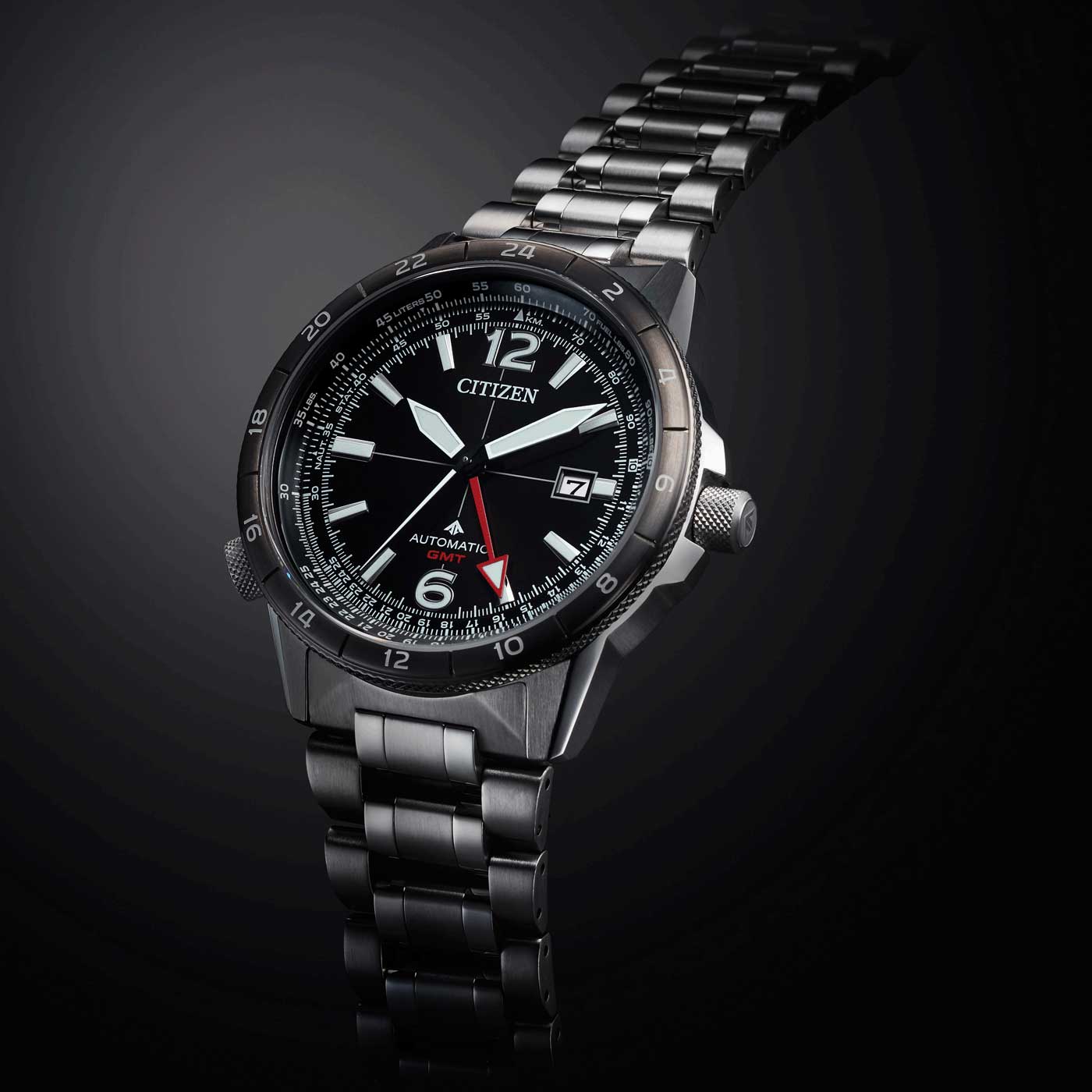 отображается центральной стрелкой. Циферблат выполнен по технологии Sunray (солнечные лучи) и защищен прочным сапфировым стеклом. Метки в виде штрихов и двух арабских цифр. Окошко даты находится в положении 3 часа. Вращающийся внутренний безель с логарифмической линейкой управляется заводной головкой в положении 7 часов. Завинчивающаяся заводная головка с защитой. Завинчивающаяся задняя крышка украшена выгравированным изображением шлема пилота. Браслет с раскладывающейся застежкой. Застежка с системой блокировки.
