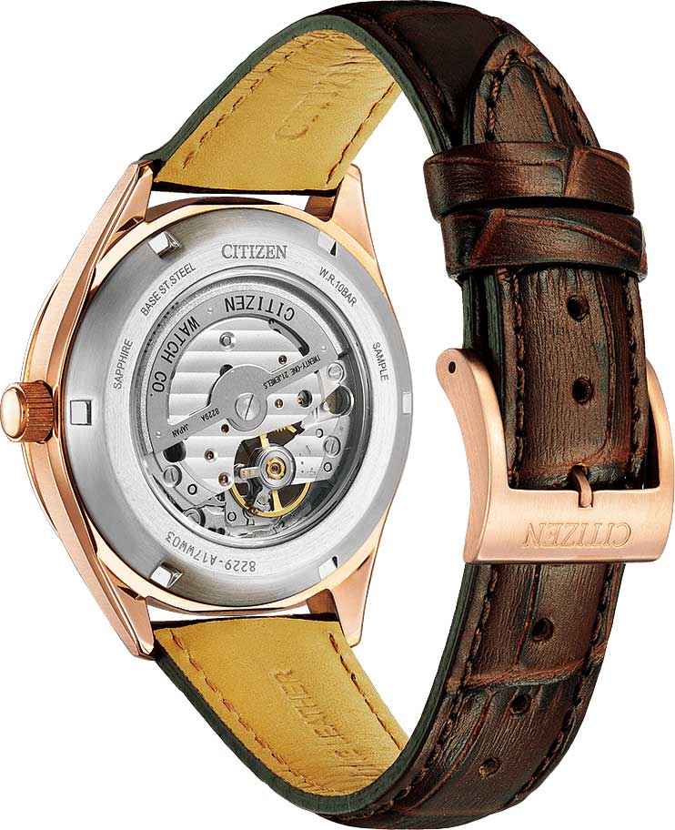 Циферблат с метками в виде штрихов защищен прочным сапфировым стеклом. Прозрачная задняя крышка. Ремешок с классической застежкой.