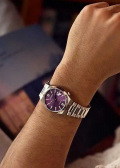 Окошко даты с увеличительным стеклом находится в положении 3 часа. Рифленая заводная головка находится в положении 4 часа. Завинчивающаяся прозрачная задняя крышка. Браслет с раскладывающейся застежкой.