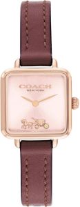 Секундная стрелка отсутствует. Рифленая заводная головка. На задней крышке обращение от COACH к своим клиентам. Кожаный ремешок с классической застежкой.