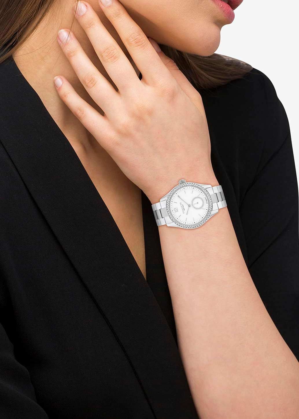 - корпус и циферблат украшены кристаллами