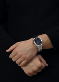 Метки и стрелки с люминесцентным покрытием, которое светится в темноте после непродолжительной зарядки на свету. Окошко даты находится в положении 3 часа. Рифленая заводная головка. Надежный стальной браслет.