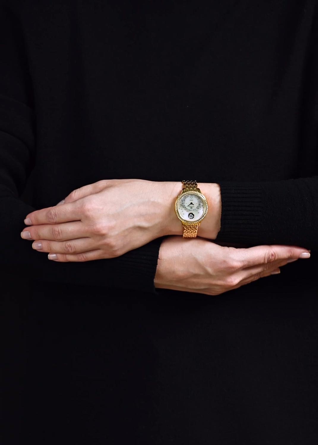 - корпус и циферблат украшены кристаллами