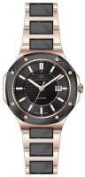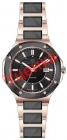 Женские часы с круглым стальным корпусом с керамической вставкой. Метки в виде штрихов. Окошко даты в положении 3 часа. Рифленая заводная головка с защитой. Стальной браслет с керамическими вставками.