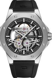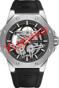 Skeleton Automatic. Лимитированная серия - 999 экземпляров. Скелетонизированные часы. В механизме 26 камней, частота 28800 полуколебаний в час. Запас хода 42 часа. Механизм часов декорирован узором «Cotes de Geneve». Многоуровневый циферблат с метками в виде штрихов. Восьмиугольный безель декорирован винтами. Завинчивающаяся заводная головка с защитой, украшена логотипом компании. Завинчивающаяся задняя крышка с сапфировым стеклом. Удобный каучуковый ремешок с классической застежкой Ardillon, изготовленной из нержавеющей стали 316L.