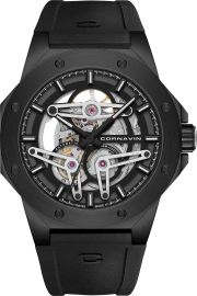Skeleton Automatic. Лимитированная серия - 999 экземпляров. Скелетонизированные часы. В механизме 26 камней, частота 28800 полуколебаний в час. Запас хода 42 часа. Механизм часов декорирован узором «Cotes de Geneve». Многоуровневый циферблат с метками в виде штрихов. Восьмиугольный безель декорирован винтами. Завинчивающаяся заводная головка с защитой, украшена логотипом компании. Завинчивающаяся задняя крышка с сапфировым стеклом. Удобный каучуковый ремешок с классической застежкой Ardillon, изготовленной из нержавеющей стали 316L.