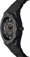 Стрелки и метки с люминесцентным покрытием, которое светится в темноте. Граненная заводная головка. Стальная задняя крышка крепится на 4-х винтах. Браслет с раскладывающейся застежкой.