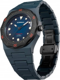 Стрелки и метки с люминесцентным покрытием, которое светится в темноте. Граненная заводная головка. Стальная задняя крышка крепится на 4-х винтах. Браслет с раскладывающейся застежкой.