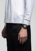 Окошко даты находится в положении между 4 и 5 часами. Граненная заводная головка. Стальная задняя крышка крепится на 4-х винтах. Браслет с раскладывающейся застежкой.