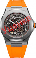 Скелетонизированные часы Slice Orange. В механизме 21 камень, частота 21600 полуколебаний в час. Запас хода 42 часа. Метки в виде штрихов. Заводная головка с защитой. Прозрачная задняя крышка крепится на 8-ми винтах. Ремешок с классической застежкой.
