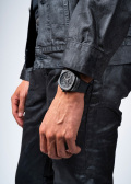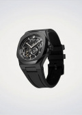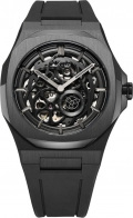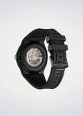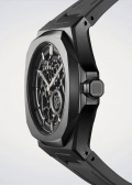 Метки в виде штрихов. Секундная стрелка на отдельном циферблате. Прозрачная задняя крышка крепится на 8-ми винтах. Каучуковый ремешок с классической застежкой.