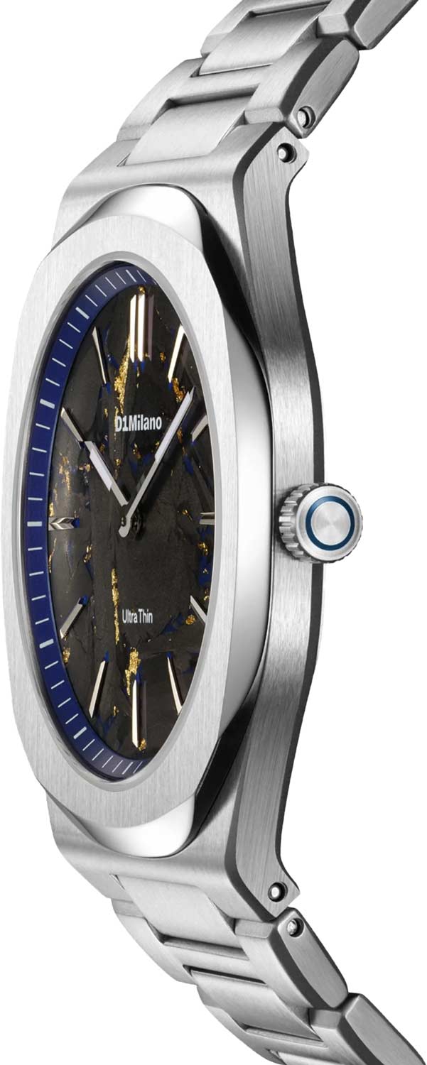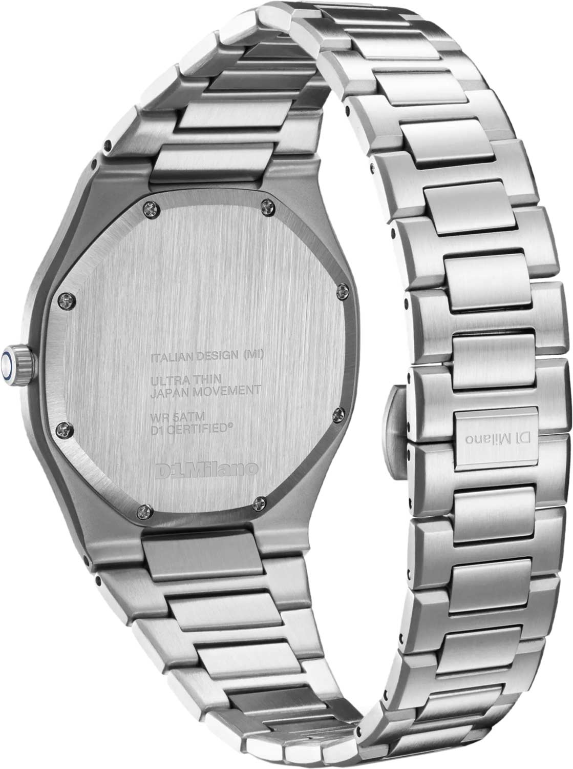 Секундная стрелка отсутствует. Рифленая заводная головка. Задняя крышка из нержавеющей стали крепится на 8-ми винтах. Стальной браслет с раскладывающейся застежкой.