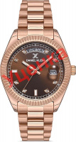 Premium. Повседневные женские наручные часы. Круглый металлический корпус c полированной поверхностью. Рифленый безель. Циферблат выполнен по технологии Sunray (солнечные лучи) и украшен кристаллами. Прямоугольные стрелки в стиле Baton. Метки в виде точек. Метки и стрелки с люминесцентным покрытием, которое светится в темноте после непродолжительной зарядки на свету. Окошко даты с увеличительным стеклом находится в положении 3 часа. Окошко дня недели находится в положении 12 часов. Рифленая заводная головка. Частично полированный и сатинированный стальной браслет с раскладывающейся застежкой.