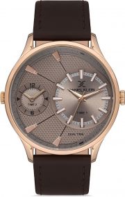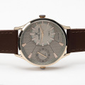 отображается на отдельном циферблате. Рифленая заводная головка. Удобный кожаный ремешок с классической застежкой.