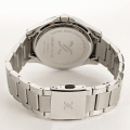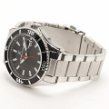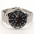 покрытием, которое светится в темноте после непродолжительной зарядки на свету. Окошко даты с увеличительным стеклом находится в положении 3 часа. Рифленая заводная головка с защитой. Частично полированный и сатинированный стальной браслет с раскладывающейся застежкой.