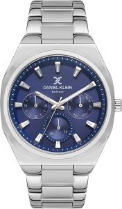 времени, дата и день недели отображаются на отдельных циферблатах. Рифленая заводная головка. Завинчивающаяся задняя крышка. Надежный стальной браслет с раскладывающейся застежкой.