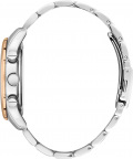 времени, второй часовой пояс и день недели отображаются на отдельных циферблатах. Окошко даты находится между часовыми отметками 4 и 5. Рифленая заводная головка. Надежный стальной браслет с раскладывающейся застежкой.