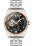 времени и секундная стрелка отображаются на отдельных циферблатах. Прозрачное окошко оси баланса. Рифленая заводная головка. Завинчивающаяся задняя крышка. Надежный стальной браслет с раскладывающейся застежкой.