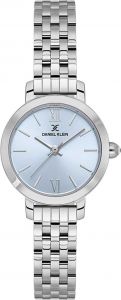 Женские кварцевые часы. Круглый металлический корпус с IP покрытием. Безель украшен паве из кристаллов. Циферблат выполнен по технологии Sunray (солнечные лучи), украшен фирменным логотипом Daniel Klein в положении 12 часов и защищен минеральным стеклом. Метки в виде точек. Клиновидные стрелки в стиле Dauphine. Рифленая заводная головка. Стальной браслет с раскладывающейся застежкой.