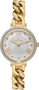 покрытием цвета желтого золота. Циферблат выполнен по технологии Sunray (солнечные лучи), украшен фирменным логотипом Daniel Klein в положении 12 часов и защищен минеральным