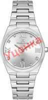 Женские кварцевые часы. Круглый металлический корпус с IP покрытием. Циферблат выполнен по технологии Sunray (солнечные лучи), украшен фирменным логотипом Daniel Klein в положении 12 часов и защищен минеральным стеклом. Метки в виде точек из кристаллов, 3, 6, 9 и 12 часовые метки в виде римских цифр. Стрелки с люминесцентным покрытием, которое светится в темноте после непродолжительной зарядки на свету. Секундная стрелка отсутствует. Окошко даты находится в положении 6 часов. Граненая заводная головка. Стальной браслет с раскладывающейся застежкой.