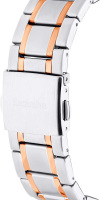 стеклом. Метки в виде арабских цифр. По краю циферблата нанесена секундная шкала с шагом 0,2 секунды. Окошко даты находится между отметками 4 и 5 часов. 12-ти и 24-х часовой формат