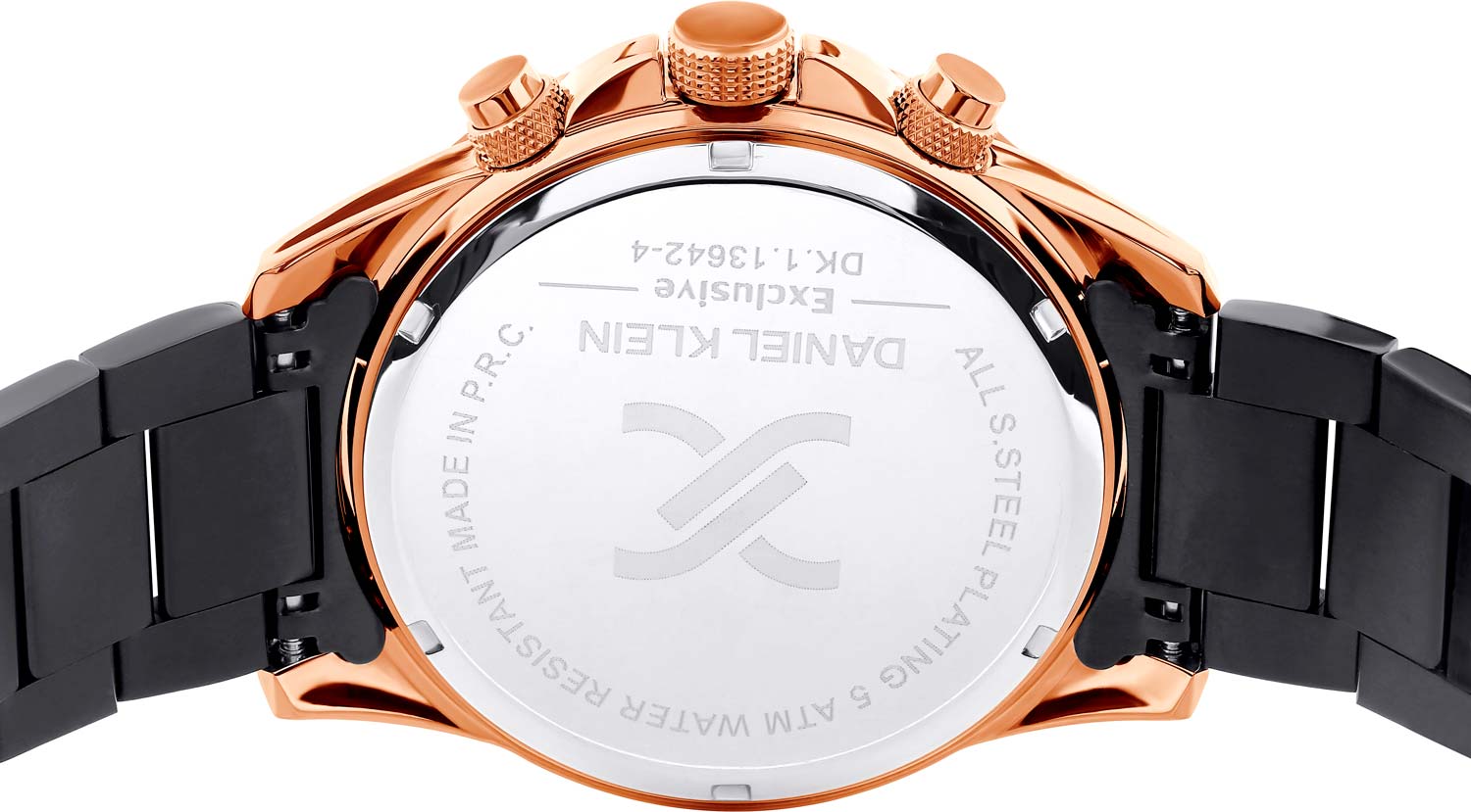 покрытием. Алюминиевый безель. Циферблат украшен фирменным логотипом Daniel Klein в положении 3 часа и защищен минеральным