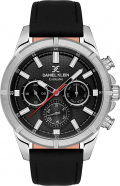 Мужские кварцевые часы. Круглый металлический корпус с IP покрытием. Циферблат часов украшен узором в виде сот, фирменным логотипом Daniel Klein в положении 12 часов и защищен минеральным стеклом. Метки в виде штрихов и стрелки с люминесцентным покрытием, которое светится в темноте после непродолжительной зарядки на свету. По краю циферблата нанесена секундная шкала с шагом 0,2 секунды. Указатели даты и дня недели вынесены на отдельные циферблаты. 12-ти и 24-х часовой формат времени. Рифленая заводная головка с защитой. Удобный кожаный ремешок с классической застежкой.
