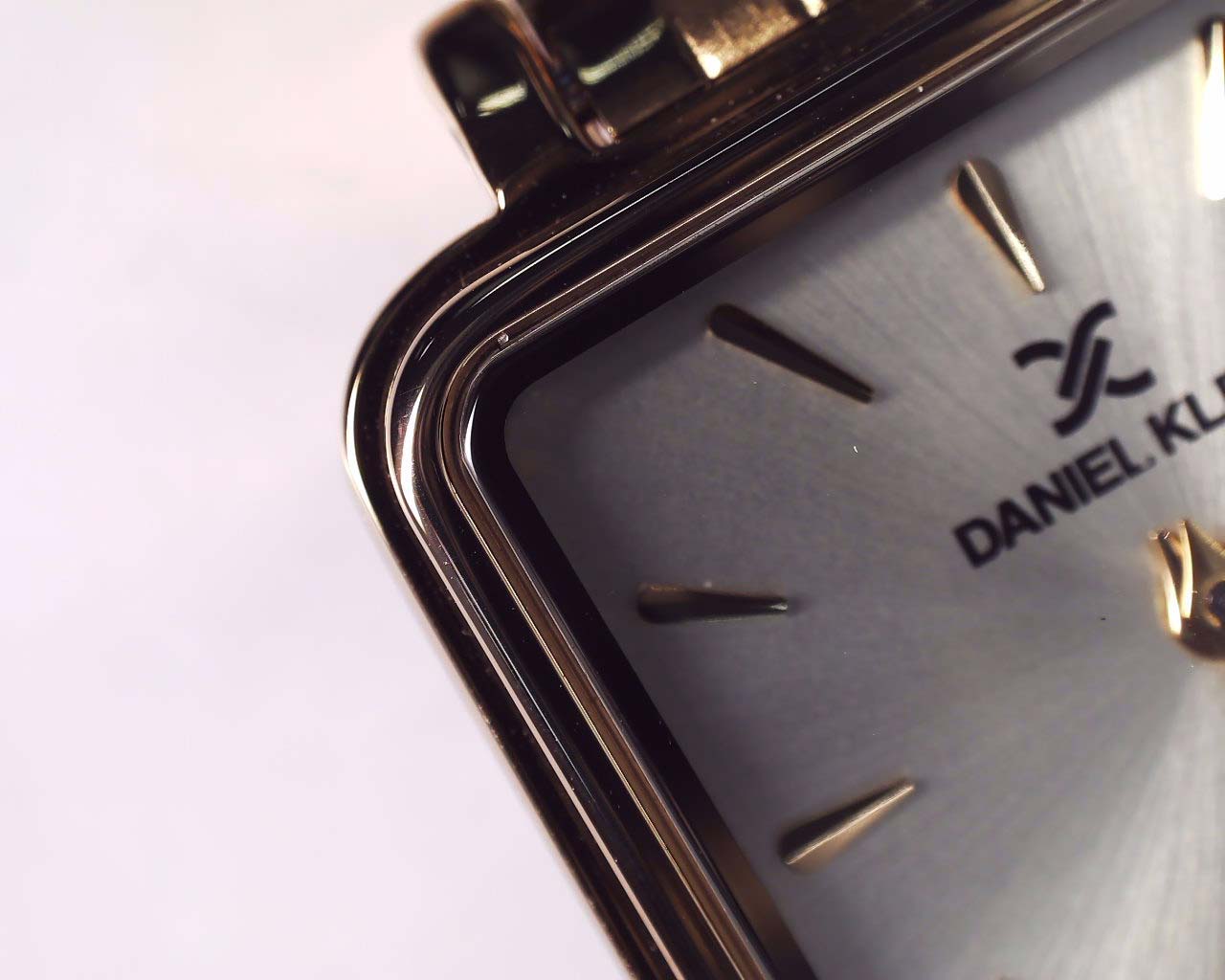 Женские кварцевые часы. Квадратный металлический корпус. Циферблат выполнен по технологии Sunray (солнечные лучи) и украшен фирменным логотипом Daniel Klein. Метки в виде штрихов. Гладкая заводная головка. Стальной браслет с раскладывающейся застежкой.