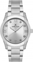 Женские кварцевые часы. Круглый металлический корпус. Центральная часть циферблата выполнена по технологии Sunray (солнечные лучи) и украшена фирменным логотипом Daniel Klein. Метки в виде точек с кристаллами и римских цифр. Рифленая заводная головка. Стальной браслет с раскладывающейся застежкой.