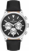 Мужские наручные часы. Круглый металлический корпус. 12-ти и 24-х часовой формат времени. Циферблат выполнен по технологии Sunray (солнечные лучи) и украшен фирменным логотипом Daniel Klein. Метки в виде штрихов. Время в 24-х часовом формате, число и день недели вынесены на отдельные циферблаты. Рифленая заводная головка. Ремешок из натуральной кожи с классической застежкой.