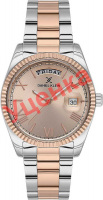 Женские наручные часы. Круглый металлический корпус. Рифленый безель. Циферблат выполнен по технологии Sunray (солнечные лучи) и украшен фирменным логотипом Daniel Klein. Метки в виде штрихов и римских цифр. Окошко даты с увеличительным стеклом находится в положении 3 часа. Окошко дня недели находится в положении 12 часов. Рифленая заводная головка. Стальной браслет с раскладывающейся застежкой.
