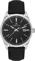 Мужские наручные часы. Круглый металлический корпус. Фактурный циферблат украшен фирменным логотипом бренда. Метки в виде штрихов. Окошко даты находится в положении 3 часа. Рифленая заводная головка. Кожаный ремешок с классической застежкой.