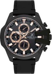 Кварцевые наручные часы. Металлический корпус. Циферблат выполнен по технологии Sunray (солнечные лучи) и украшен фирменным логотипом Daniel Klein. Метки в виде штрихов. 12-ти и 24-х часовой формат времени, второй часовой пояс и день недели отображаются на отдельных циферблатах. Рифленая заводная головка с защитой. Удобный кожаный ремешок с классической застежкой.