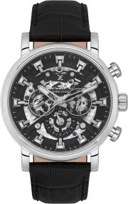 Мужские механические скелетонизированные часы. Круглый металлический корпус. Циферблат украшен фирменным логотипом Daniel Klein. Метки в виде штрихов. 12-ти и 24-х часовой формат времени, второй часовой пояс и день недели отображаются на отдельных циферблатах. Рифленая заводная головка с защитой. Удобный кожаный ремешок с классической застежкой.
