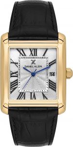 Классический аксессуар для деловых мужчин. Наручные кварцевые часы. Металлический прямоугольный корпус. Гильошированный циферблат украшен фирменным логотипом Daniel Klein. Метки в виде римских цифр. Окошко даты находится в положении 3 часа. Шестигранная заводная головка. Удобный кожаный ремешок с классической застежкой.