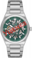 Мужские механические скелетонизированные часы с автоподзаводом. Круглый металлический корпус с IP покрытием. Метки в виде штрихов. Рифленая заводная головка. Частично полированный и сатинированный стальной браслет с раскладывающейся застежкой.