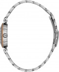 Заостренные прямоугольные стрелки в стиле Baton. Секундная стрелка отсутствует. Рифленая заводная головка. Надежный стальной браслет с раскладывающейся застежкой.