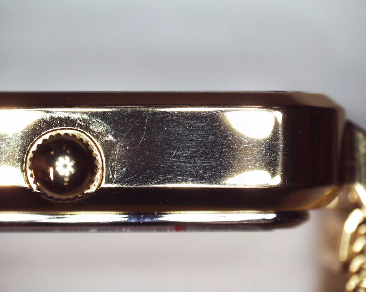 Наручные женские часы Quadro Pressed Evergold с прямоугольным корпусом и надежным японским механизмом. Накладные метки в виде штрихов. Рифленая заводная головка. Индивидуальный серийный номер. Браслет миланского плетения.