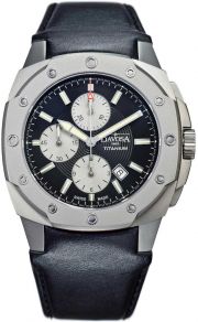 Titanium Automatic Chronograph. Швейцарские мужские часы-хронограф с титановым корпусом. Круглый гильошированный циферблат с люминесцентными стрелками. Окошко даты находится между отметками 4 и 5 часов. Завинчивающаяся прозрачная задняя крышка. Рифленая заводная головка. Удобный кожаный ремешок с классической застежкой.