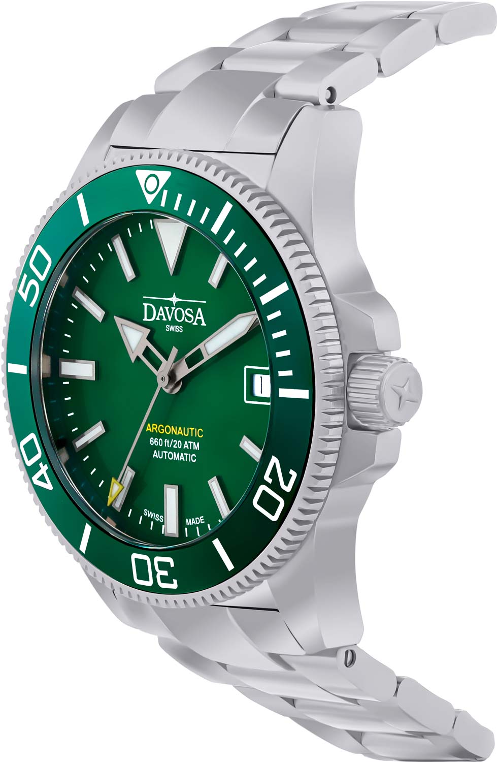 Часы в спортивном дизайне с надежным швейцарским механизмом по достоинству оценят мужчины, которым не чужд дух приключений.Мужские дайверские механические часы с автоподзаводом Argonautic 39 BS Automatic. Круглый стальной корпус с сатинированной поверхностью. Керамический безель вращается в одном направлении. Циферблат защищен устойчивым к царапинам сапфировым стеклом с антибликовым покрытием. Окошко даты находится в положении 3 часа. Стрелки часов и метки в виде штрихов с люминесцентным