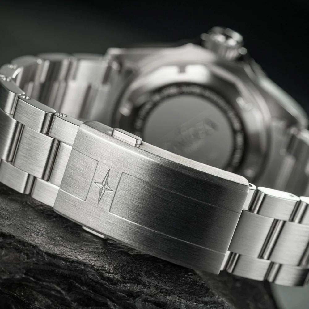 Автоматический гелиевый предохранительный клапан, установленный в положении 9 часов, обеспечивает в часах выравнивание давления при извлечении на поверхность. Завинчивающаяся рифленая заводная головка с защитой. Завинчивающаяся задняя крышка. Надежный стальной браслет с раскладывающейся застежкой, которая двумя боковыми кнопками и волнообразной регулировкой внутри застежки обеспечивает удобную регулировку длины браслета - без каких-либо дополнительных инструментов.